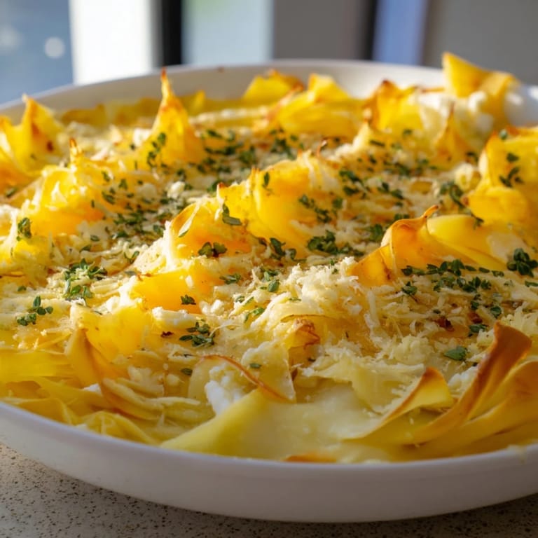 Serve warm or at room temperature, optionally garnished with fresh chives or parsley and a sprinkle of freshly cracked black pepper.