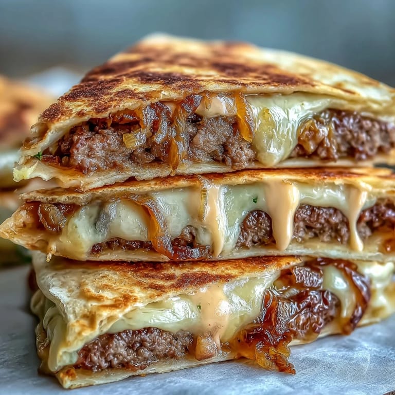 I made these for a game night once, and people kept wandering into the kitchen asking what smelled so good. The sizzle of beef hitting the hot griddle, the smell of caramelizing onions, and then that final press when the tortilla crisps up, it's a full sensory experience. Everyone grabbed wedges straight off the cutting board, and I never even got them to a serving plate.