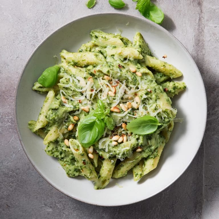 I like to serve this with a handful of arugula dressed in lemon juice and olive oil on the side, because the peppery bite and acidity cut through the cream in the best way. A crusty baguette for mopping up any sauce left in the bowl is non-negotiable. If you're feeling fancy, a chilled glass of Pinot Grigio or Sauvignon Blanc matches the herbaceous brightness of the pesto and makes it feel like a real occasion.