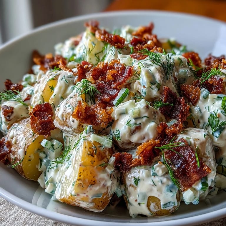 Save to Pinterest The first time I brought this potato salad to a backyard Memorial Day picnic, the entire table went quiet on the first bite. It wasn’t planned, honestly—I had simply tossed together what sounded festive in my head, hoping for something bright and satisfying alongside smoky grilled burgers. There’s something about the aroma of sizzling bacon mingling with crisp dill that makes you feel like summer has really arrived. The sound of laughter mixed with the gentle clink of serving spoons as everyone dove in. Even now, just the smell of red onions hitting the tangy dressing makes me hungry for sunlit get-togethers.