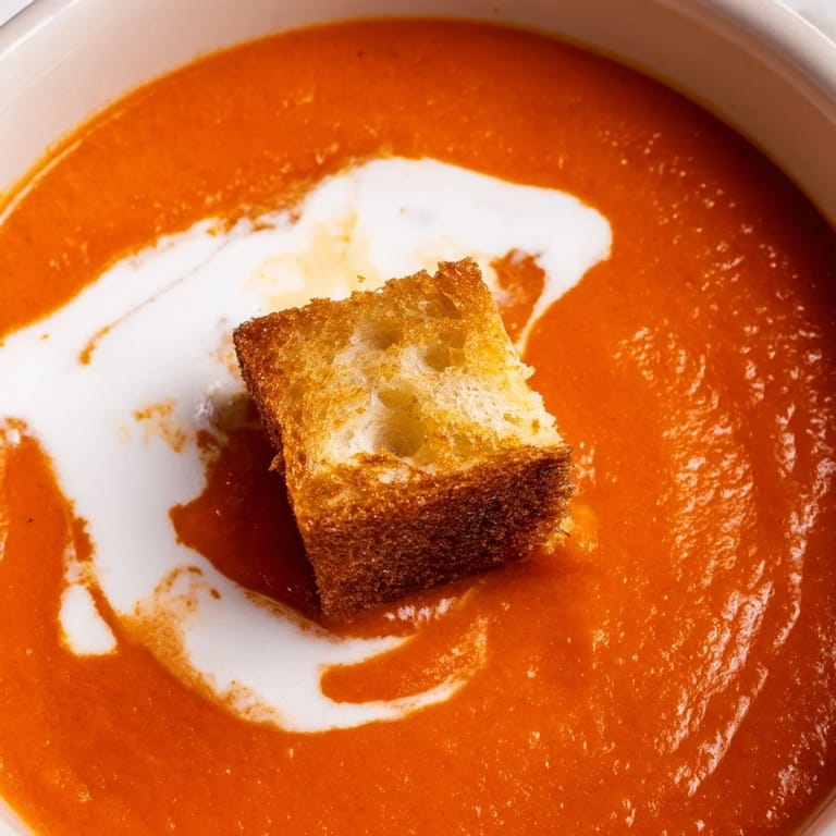 Save to Pinterest The smell of tomatoes roasting in the oven always pulls me back to that first cold October when I learned that soup didnt have to come from a can. I was tired of the same routine dinners, and a pile of tomatoes from the farmers market sat on my counter, daring me to do something interesting. I tossed them in the oven with garlic and onion, not really knowing what would happen. What came out was sweet, concentrated, and nothing like the watery stuff I grew up with. That night, I made grilled cheese croutons on a whim, and suddenly soup felt like an event.