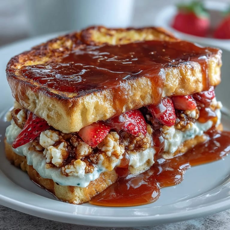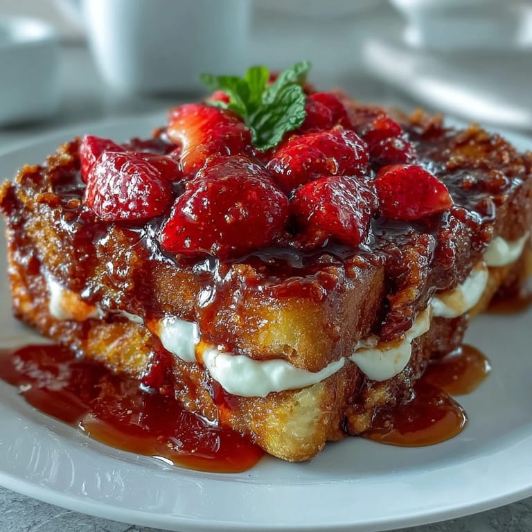 Save to Pinterest My neighbor stopped by one April morning with a basket of strawberries from her garden, and I found myself staring at them wondering what to do with more than jam. That's when I remembered my grandmother's baked French toast—the kind that fed a crowd without requiring you to stand at the stove flipping individual slices. I combined both ideas that afternoon, and what came out of the oven was this tender, custardy casserole studded with bright berries and topped with a buttery crumb crust that had everyone asking for seconds before breakfast was even officially over.