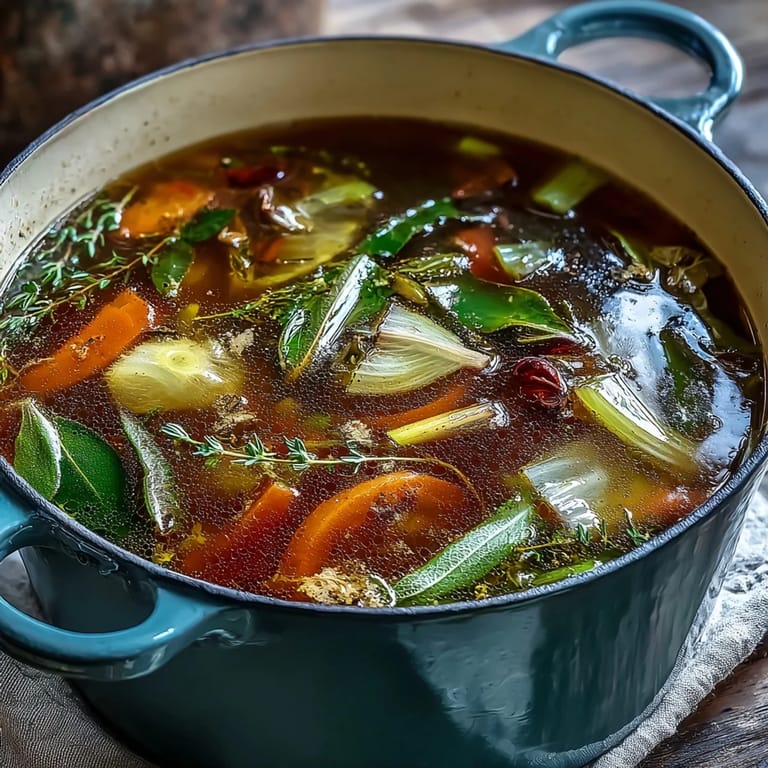 Save to Pinterest The first time my five-year-old niece helped me make this broth, she peered into the pot with genuine wonder, asking where the magic happened that turned garbage into treasure. Her small hands carefully dropped in each vegetable piece as she named them, and when we strained the finished broth, she proudly carried a small cup to everyone in the house. That day, cooking became alchemy in her eyes, and perhaps the seeds of her own kitchen adventures were planted.